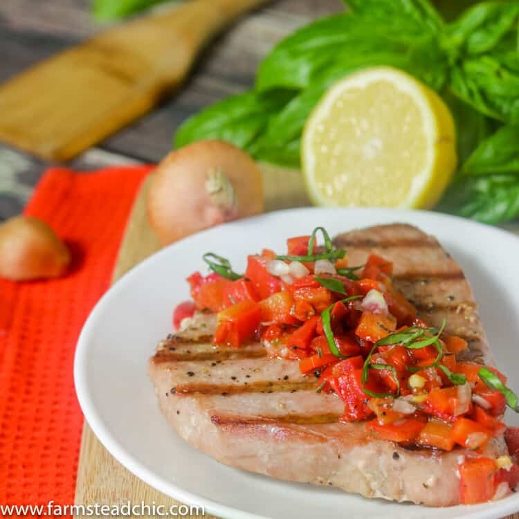 And if you make this amazing Paleo and Whole30 Grilled Ahi Tuna with Roasted Red Pepper Relish, be sure to tag me on Instagram as @farmsteadchic and use #farmsteadchic. I wanna see those pictures!