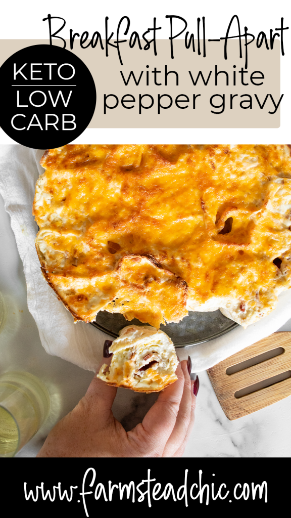 Pin this Cheesy Keto Breakfast Pull-Apart with White Pepper Gravy for later!
