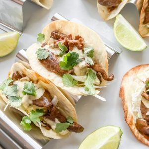These keto Korean BBQ beef tacos are a quick and easy, flavorful low carb dinner. Top them with a creamy avocado cilantro sauce to take them to the next level.