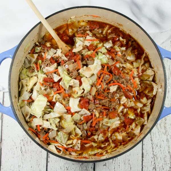 I’m not a fan of cold weather. January 1st is when I burrow in the house in my fuzzy housecoat and super-thick socks, only going outside when I absolutely must, and eating wonderfully warm soups, stews and chilis. Although it’s not quite the new year yet, I’m already making plans. I’ve had enough cakes and pies, cookies and holiday cocktails. I’m craving healthy food and ready to start 2017 off Whole30-style. This Paleo & Whole30 Cabbage Beef Soup is the perfect cold weather, healthy one-pot wonder. I made a big batch in my trusty Dutch Oven so I can have some for lunch this week and also freeze a couple servings for later.