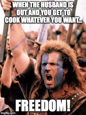 I whipped up this Loaded Whole30 & Paleo Tuna Salad on my lunch break. It’s super-easy to make and chock-full of flavor and healthy goodness. Since I work only five minutes from home and my husband works at home, we usually eat lunch together. In other words, I’m responsible for making, planning, and/or coordinating our lunches every day in addition to dinners and sometimes even breakfasts, eek! Now, he won’t touch canned tuna with a 10-foot pole, but I love it because it’s healthy, cheap, and easy. Today he had a business lunch, so I was on my own mid-day. I felt like Mel Gibson in Braveheart… “FREEDOM!” Do you need a visual? Here you go…