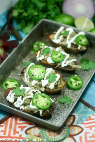 - Fill each skin evenly with the chicken chili mixture until slightly heaping.