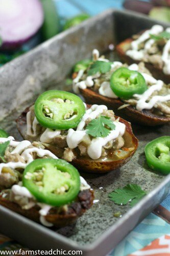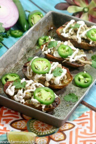I’ll go ahead and apologize for posting two potato skins recipes in a row, but it’s kind of like a #sorrynotsorry situation, because these Whole30 White Chicken Chili Potato Skins are gonna rock your world.
